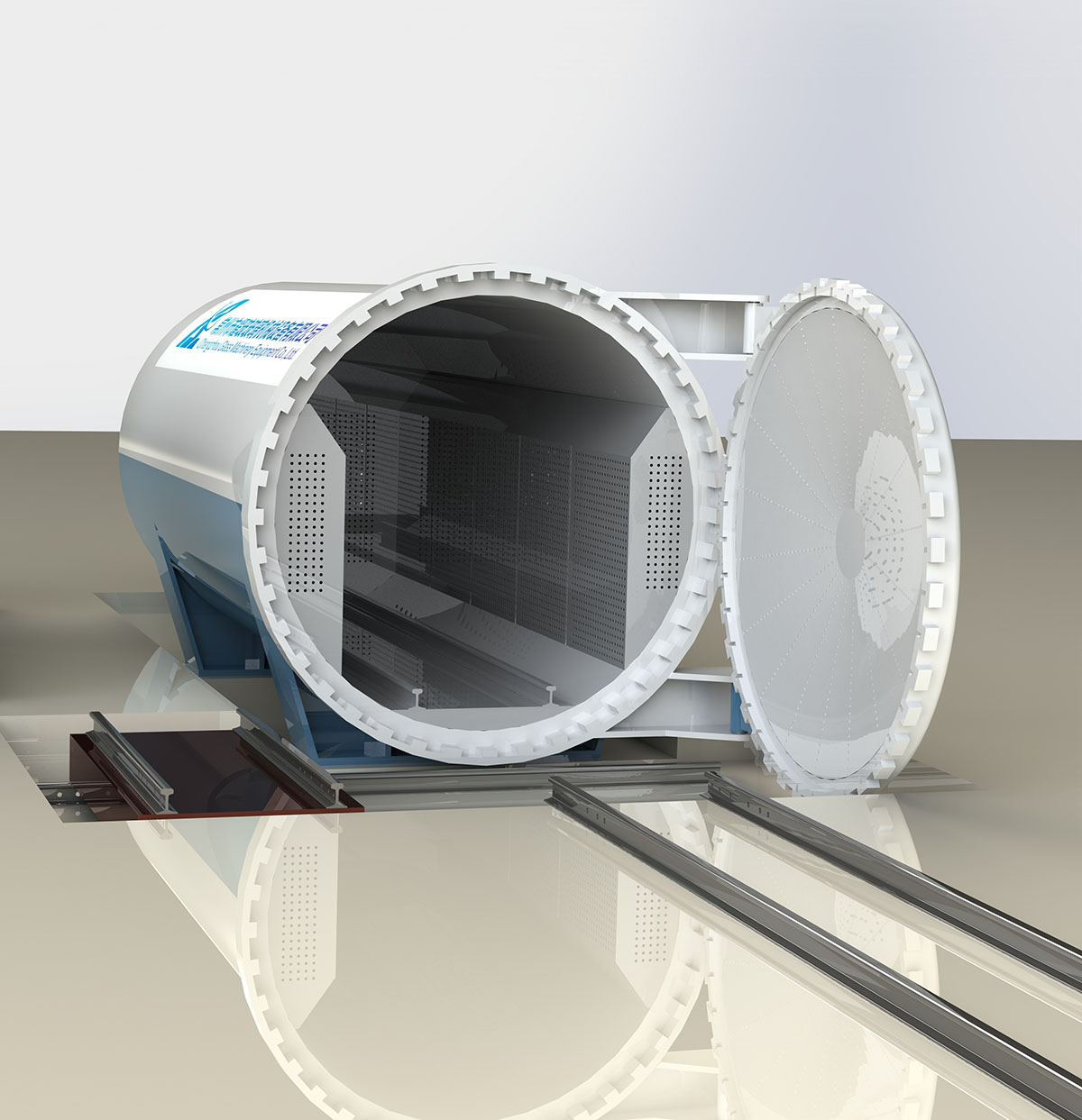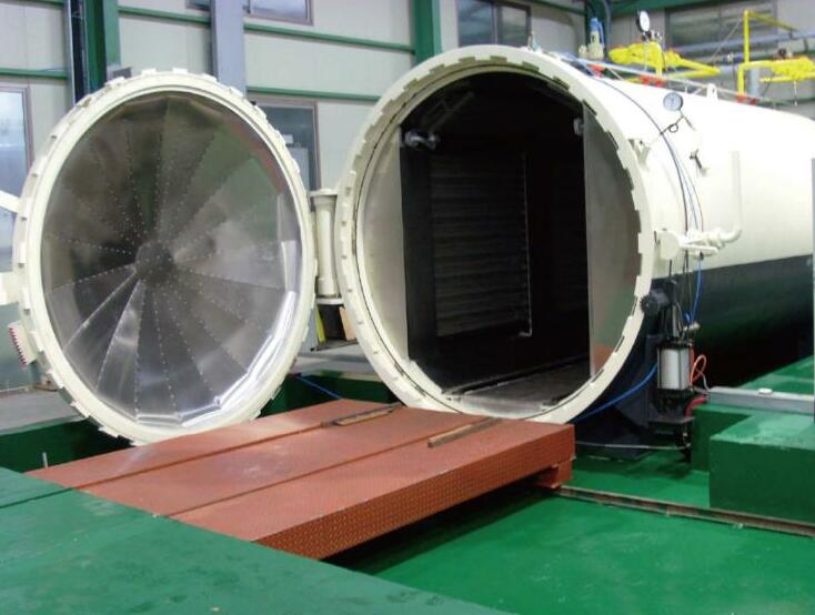 高壓釜是夾層玻璃生產的關鍵設備,它通過加熱、加壓、冷卻等工藝流程,將夾層玻璃牢固粘合在一 起。設備由帶有加熱、冷卻系統并經過保溫的高壓釜爸體和控制系統2部分組成。